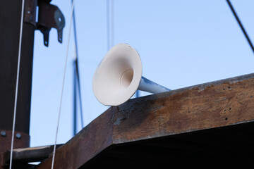 Closeup of a chromed foghorn on a yacht. Air horn boat. Nautic gear