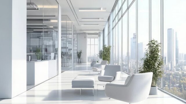 Video A bright and airy room filled with natural light from numerous windows, featuring a single white chair
