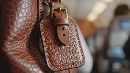 Close Up of Leather Bag With Buckle on Passenger Plane