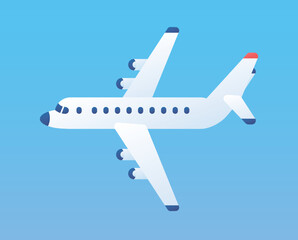 Simple airplane travel opens the background behind itself. Plane journey, romantic travel, tours, cruises, airport advertising, trip abroad on vacation, and plane routes vector illustration banner