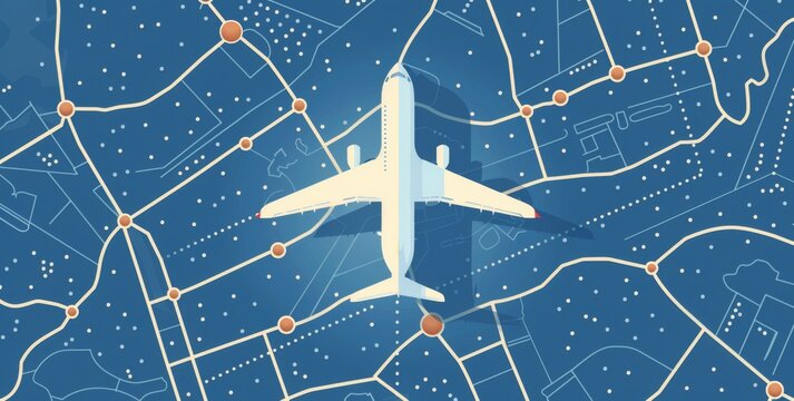 Glowing blue polygonal airplane and world map for global connectivity themes