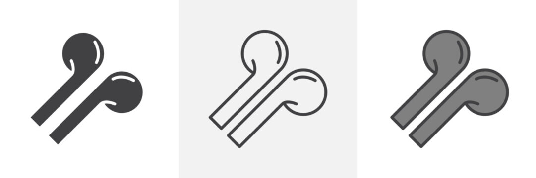 A pair of wireless earbud headphones line art vector icon for apps and websites