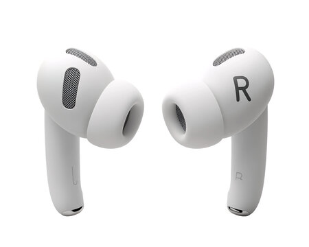 Apple AirPods wireless Bluetooth headphones for Apple iPhone. New Apple Earpods Airpods on a blue background.