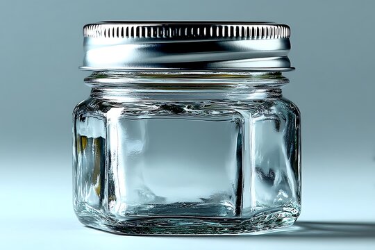 A plastic jar with an airtight seal, containing mixed nuts, photographed on a white background. shiny, Minimal and Simple,