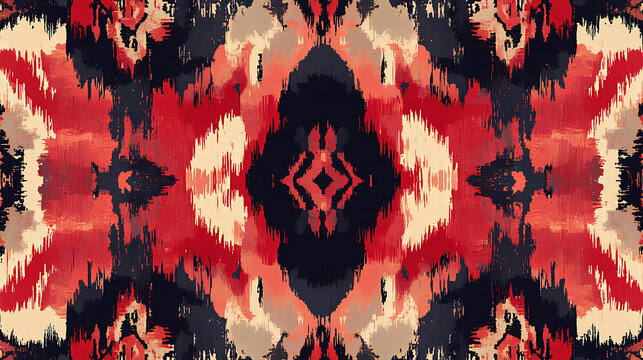 Seamless ikat pattern featuring abstract design watercolor elements damask style digital floral motifs geometric shapes ajrakh influences allover paisley African zig zag batik aesthetics and ethni