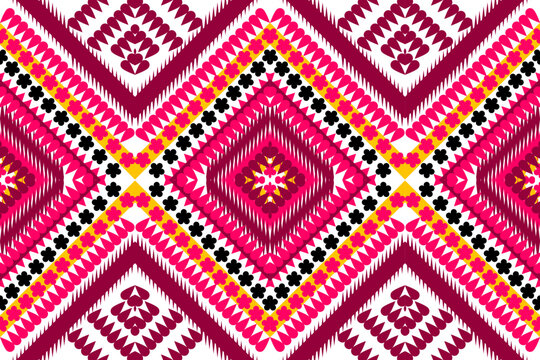 floral ethnic ikat seamless pattern traditional design for background, carpet, wallpaper, clothing, wrapping, fabric, vector illustration, embroidery style, Ajrakh, block print, batik print allovers