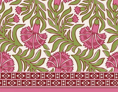 HAND DRAWN MUGHAL FLORAL JAIPUR PRINTS SEAMLESS PRINT DIGITAL PATTERN WITH SEAMLESS BORDER