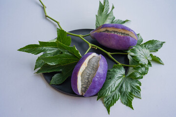 fresh akebi fruits on the table, delicious fruits, healty and natural food