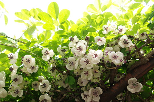 Beautiful image of pink flowers of chocolate vine or akebia quinata