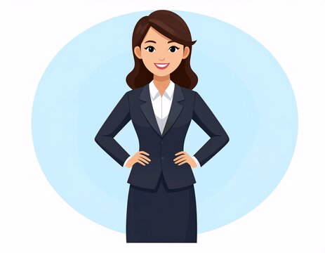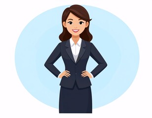 Confident Cartoon Businesswoman in a Dark Suit, Posing with Hands on Hips