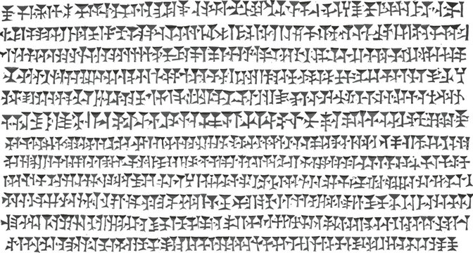 Ancient Mesopotamian cuneiform script horizontal text vector illustration featuring Sumerian clay tablet writing style.