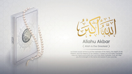 Allahu Akbar Arabic Calligraphy and holy quran illustration Meaning Allah is Greatest in Elegant Script