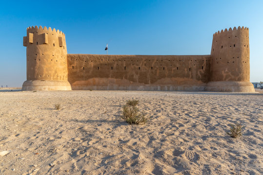 northern part of Qatar where the Al Zubara Fort is located. Ancient fortress with a historical background in the Arabian Peninsula and is surrounded by the barren terrain of the Persian Gulf.
