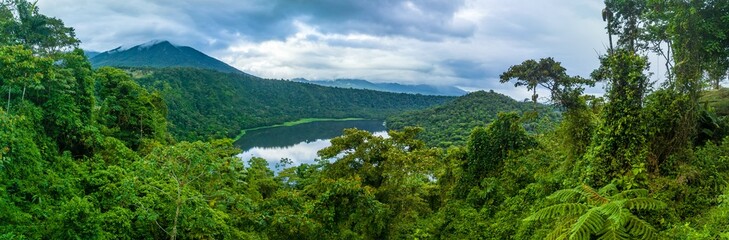 Aerial view, panorama, lake and rainforest, Laguna Hule, Alajuela province, Costa Rica, Central America
