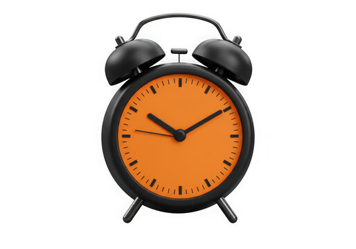 A vibrant orange alarm clock sits on a teal surface, highlighting its classic design and timekeeping features against a minimalist background.