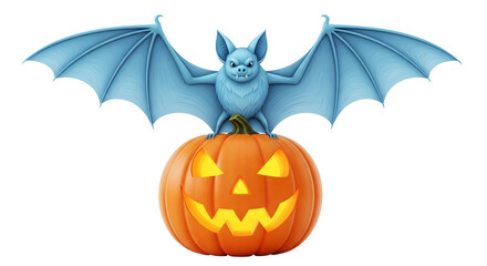 Spooky blue bat perched atop a glowing jack-o'-lantern, perfect for Halloween decorations and festive celebrations