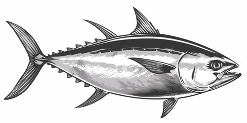 Realistic Side View of Albacore Tuna Fish in Black and White Isolated Illustration for Commercial