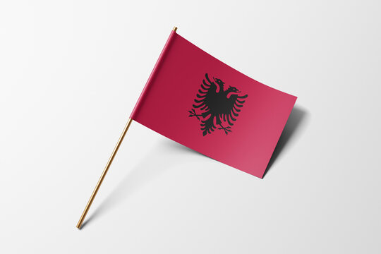 Small National Flag of the Albania on a Black Background. 3d Rendering