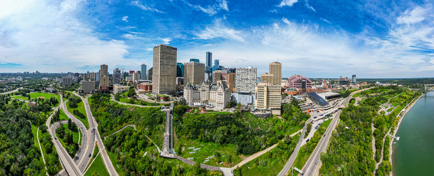 Aerial of the skyline of Edmonton, Alberta, Canada