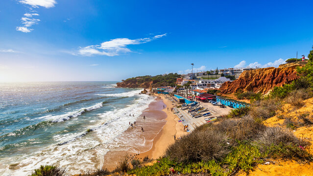 Amazing view of town Olhos de Agua in Albufeira, Algarve, Portugal. Coastal view of town Olhos de Agua, Albufeira area, Algarve, Portugal.