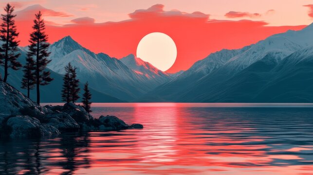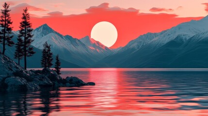 Retro background futuristic landscape 1980s style. Digital retro landscape cyber surface. Retro music album cover template: sun, space, mountains . 80s Retro Sci-Fi Background Summer Landscape.