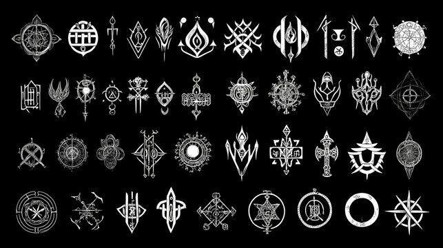 Collection of Astrological and Alchemical Symbols in Detailed Line Art.
