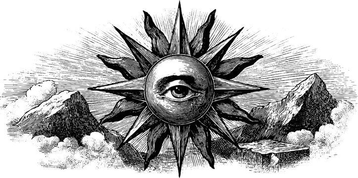 Mystical alchemical symbol with geometric sun and eye design for spiritual and esoteric themes