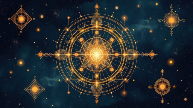 Mystical sacred geometry symbols background with alchemy and golden ratio elements for science and spirituality designs. Alchemy. Illustration