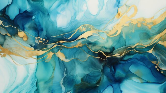 Abstract pink with blue bright shiny color fluid background, hand drawn alcohol painting with golden streaks, liquid ink technique texture for backdrop design