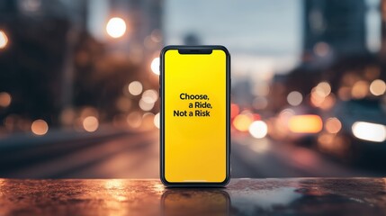 National Drunk and Drugged Driving Awareness Week, rear view of a car braking at night, bright red brake lights reflecting on wet asphalt,printed message: "Think Before You Drive",