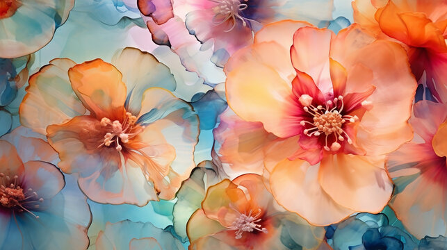Beautiful floral alcohol ink illustration in bright colors. For covers, wallpapers, branding, greeting cards, invitations, social media and other stylish projects.