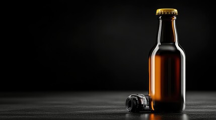 Amber Beer Bottle on Dark Surface