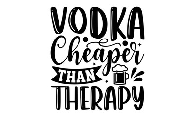 Vodka Cheaper Than Therapy- Alcohol svg design, Hand written typography design and isolated white background, for Cutting Machine, Silhouette Cameo, Cricut eps 10.