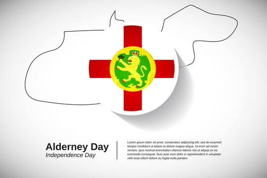 National day of Alderney. Creative country flag of Alderney with outline map illustration