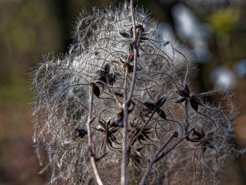 Close up of a plant with a lot of moss on it. The moss is white and brown