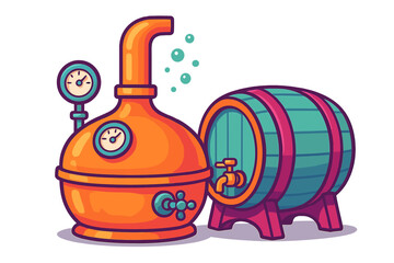 alembic still for making alcohol inside distillery, destilling spirits sketch