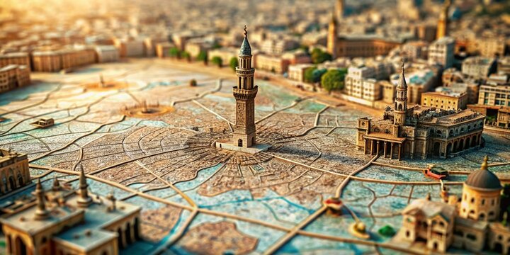 Conceptual Map of Aleppo, Syria with Dynamic Rotating Background for Visual Storytelling