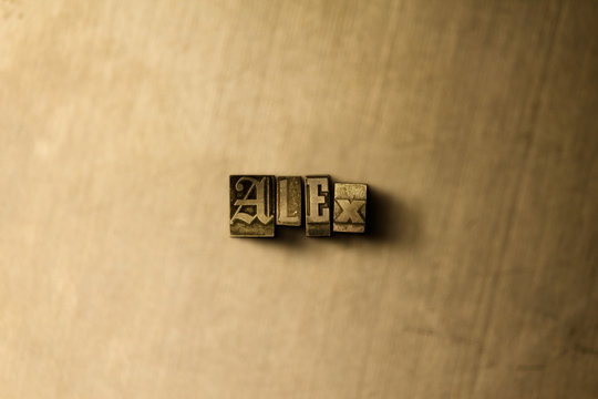 ALEX - close-up of grungy vintage typeset word on metal backdrop. Royalty free stock illustration.  Can be used for online banner ads and direct mail.