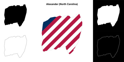Map of Alexander County in North Carolina state on white background. single County map highlighted by black color on North Carolina map. UNITED STATES, US
