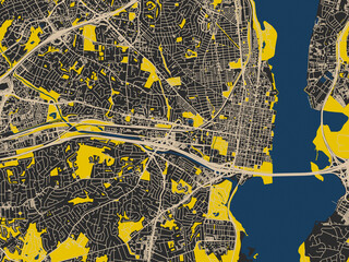 Map of Alexandria, Egypt. Detailed city map, metropolitan area border.