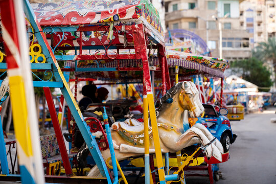 A free outdoor ride park for children in Alexandria, Egypt