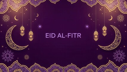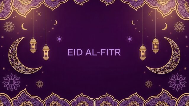 Eid al-Fitr celebration background with purple and gold decorations alfitr ramadan islamic holiday festival