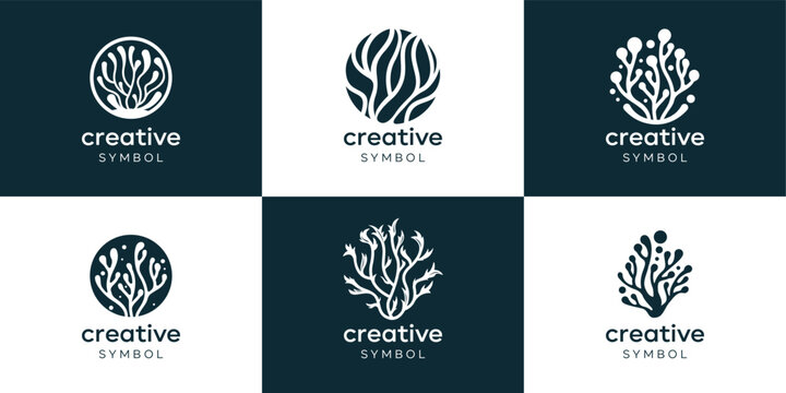 Collection icon set Neuron Nerve Cell vector template, Coral Seaweed logo design inspiration