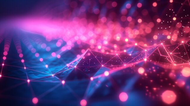 Digital graphic abstract background for technological processes, neural networks, digital data storage, particle flow, fundamentals of artificial intelligence Technology Network Background, banner