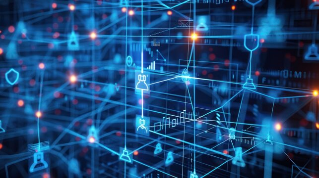 Colorful Abstract Digital Data Flow in a Cyber Environment During Nighttime Visual Display