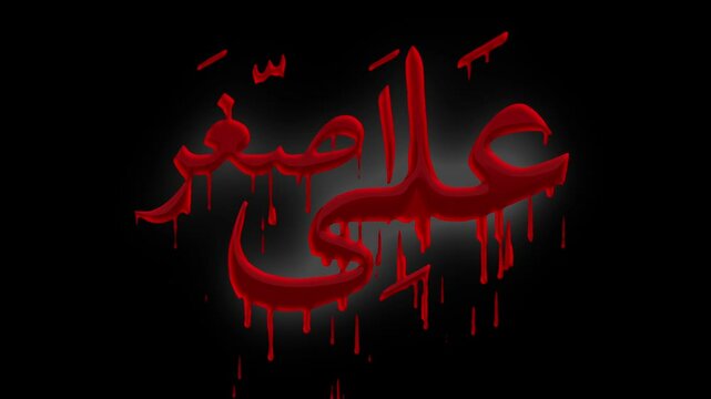 Ali asghar Arabic calligraphy text with dripping blood glow animation video.