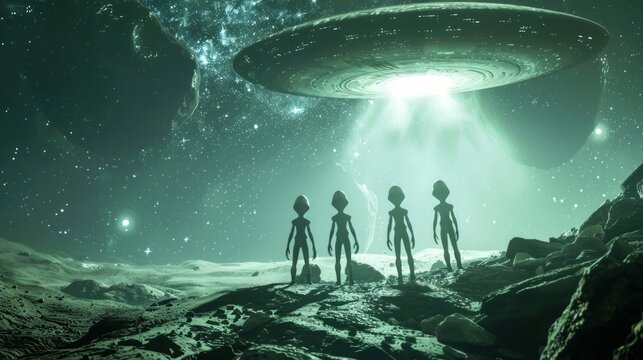 The excitement of alien encounters with a dramatic illustration of extraterrestrial beings exploring a mysterious planet