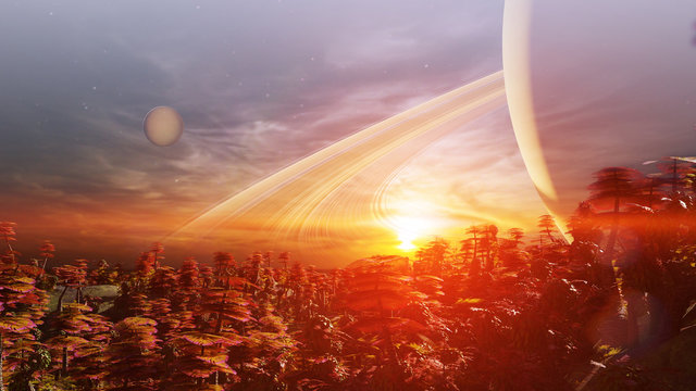 Mysterious sci-fi planet with alien landscapes and futuristic technology, alien, technology, futuristic
