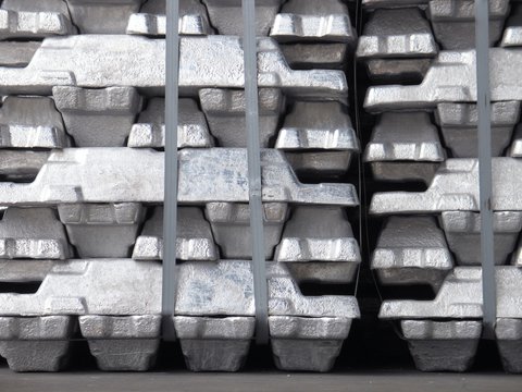 Ein Stapel mit Aliminium Metall in einer Fabrik
