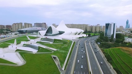 Aerial view of Heydar Aliyev Center Museum in Baku, Azerbaijan